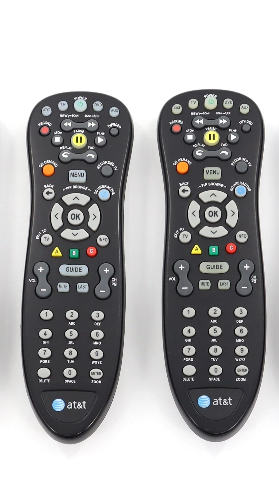 Lot of 2 AT&T S10-S1 remote controls for receivers and set-top boxes, each with manual included. These remotes feature universal setup capabilities; however, some functions may not work for devices other than your receiver. Please check receiver compatibility before purchase and contact us if you need more information. Manual setup is required to program the remotes for use with TVs, DVD players, and other audio/video devices.