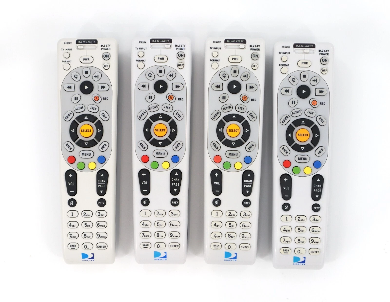 Lot of 25 replacement HD DVR remote controls for DirecTV receivers and set-top boxes, model RC65RX; although these remotes offer universal setup capabilities, some functions may not work with all devices other than your receiver, so please verify receiver compatibility before purchase and contact us if you need additional information, as manual setup is required for use with TVs, DVD players, and AV receivers.
