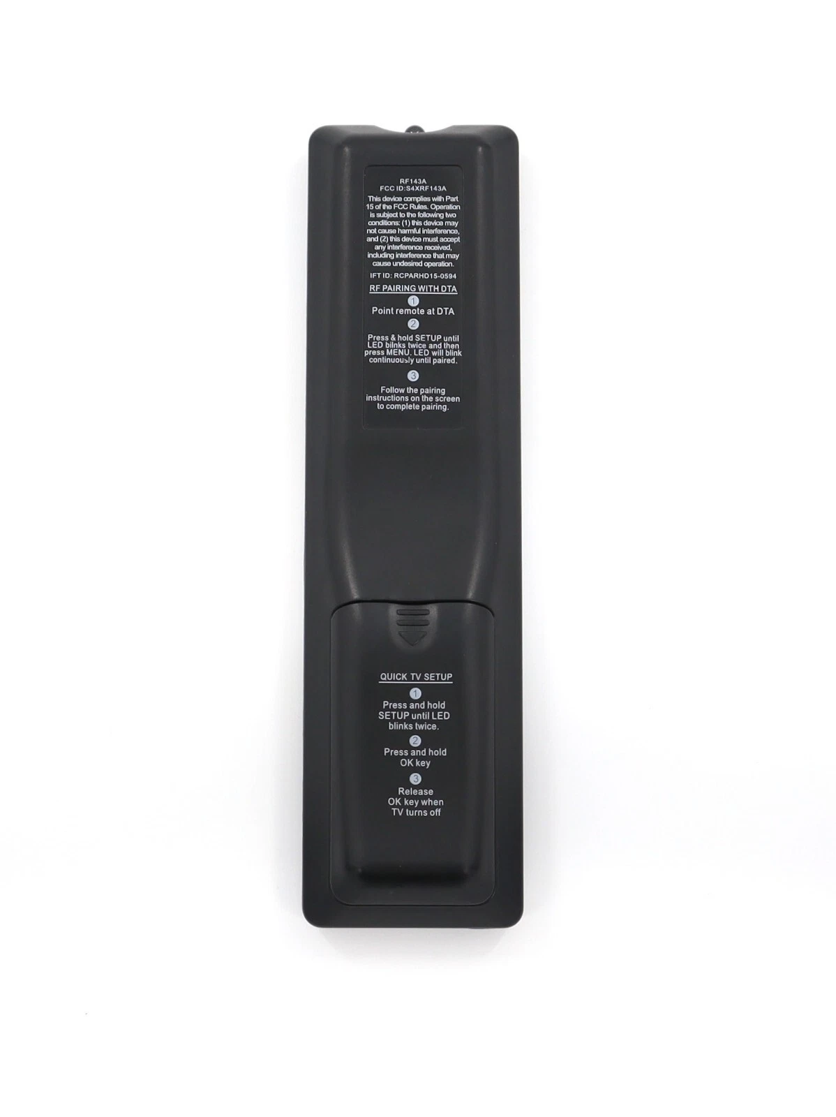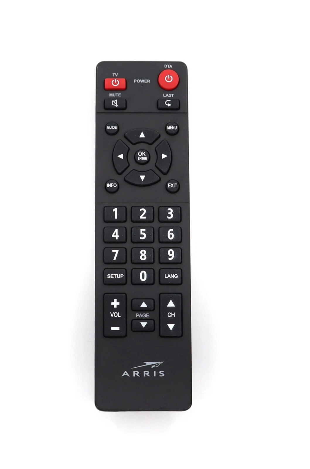 Arris TV remote control, model RF143A. This remote is compatible with Arris TV systems and is ideal as a replacement or spare remote. Please verify compatibility with your Arris device before purchase.