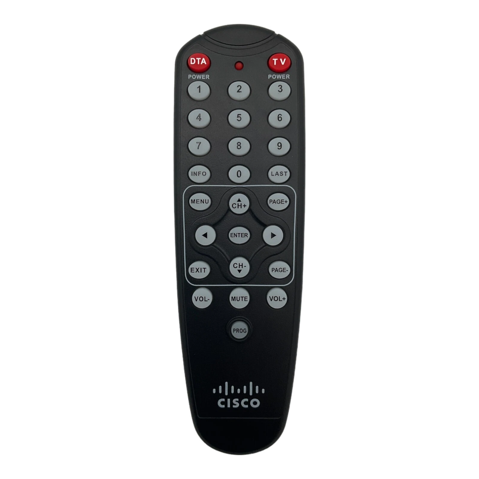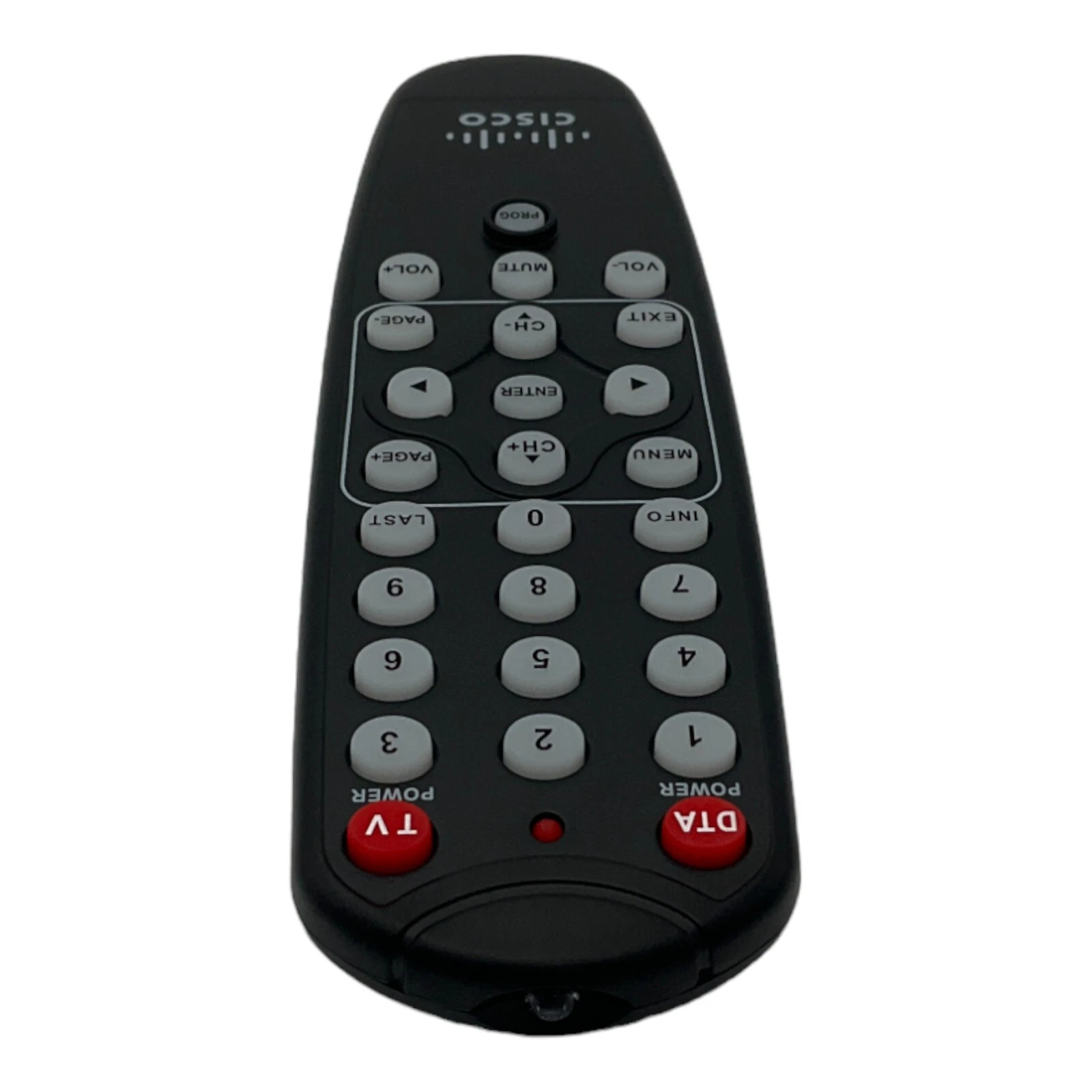 Cisco DTA HDA-IR2.2 wireless remote control designed for use with digital transport adapters and compatible TV receivers. This remote comes in original packaging with batteries included, offering reliable wireless control with a range of 5–10 m — perfect as a replacement or spare remote for your home entertainment system. Compatible with a variety of universal receiver setups and remotes.
