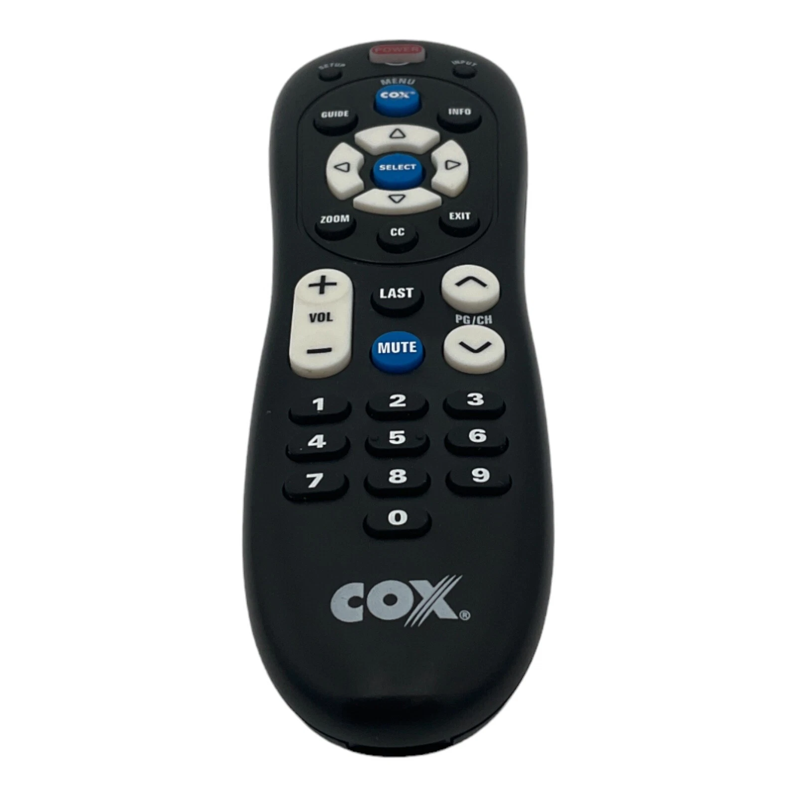Cox URC-2220-R DTA IR remote control, designed for use with compatible Cox cable receivers and digital transport adapter (DTA) set-top boxes. This infrared (IR) remote provides simple and reliable control for everyday TV viewing. Includes the instruction manual and batteries, ready to use out of the box.