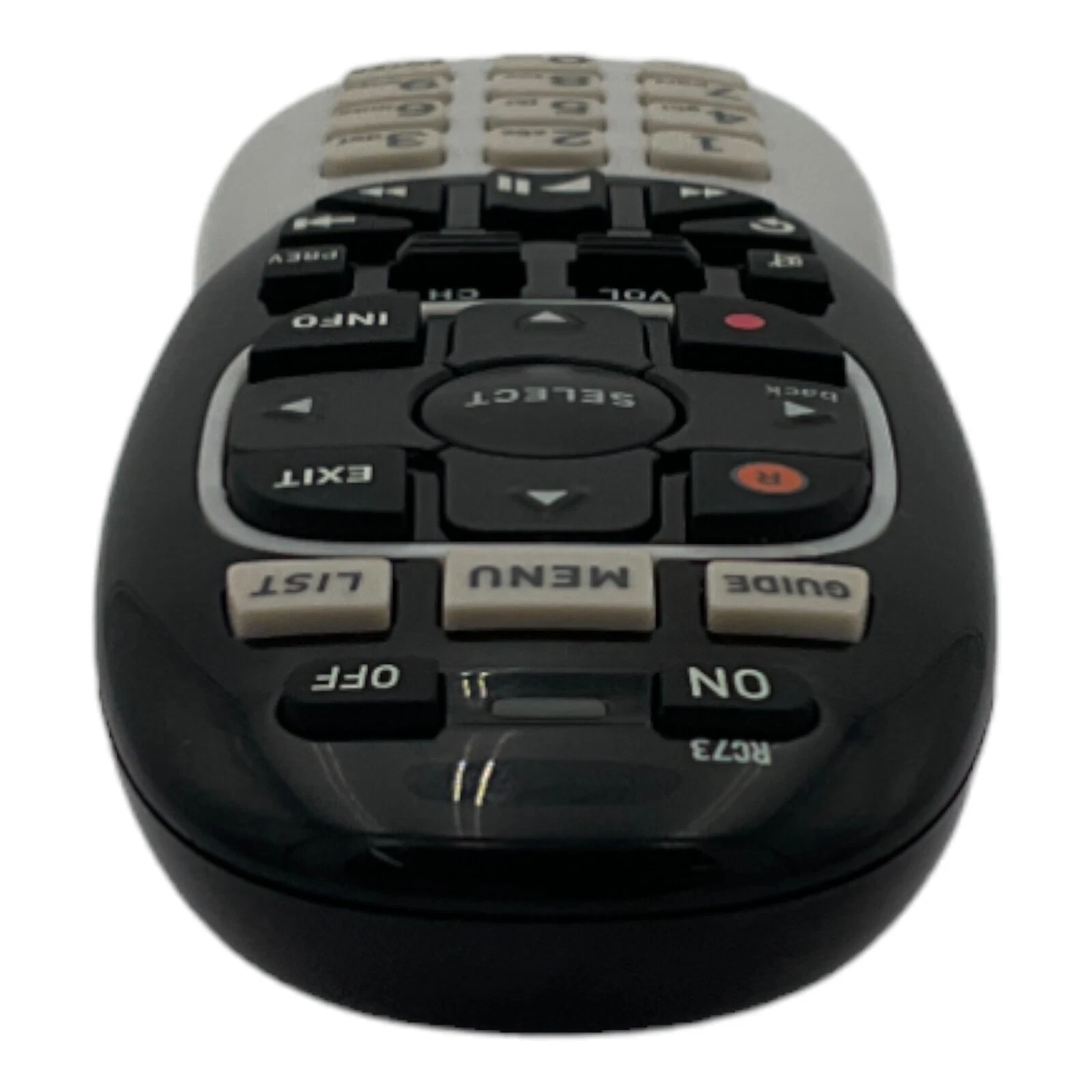 DirecTV RC73 IR/RF remote control, designed for use with compatible DIRECTV receivers and Genie set-top boxes. This dual-mode remote supports both infrared (IR) and radio frequency (RF) operation, allowing flexible control even when your device is out of direct line-of-sight. Includes manual and batteries, ready to use right out of the box.