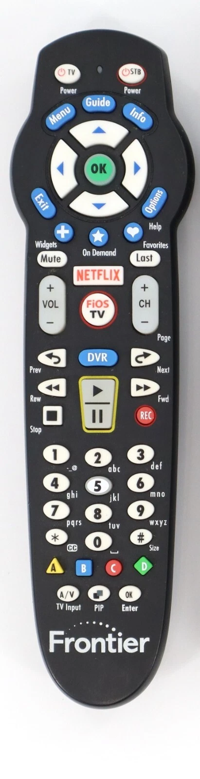 Frontier P265V3.1 remote control, compatible with Frontier (formerly Verizon FiOS) receivers and set-top boxes, featuring a dedicated Netflix button. it supports universal setup capabilities, some functions may not work with devices other than your receiver. Manual setup is required for TVs, DVD players, and other AV equipment. Please check receiver compatibility before purchase.