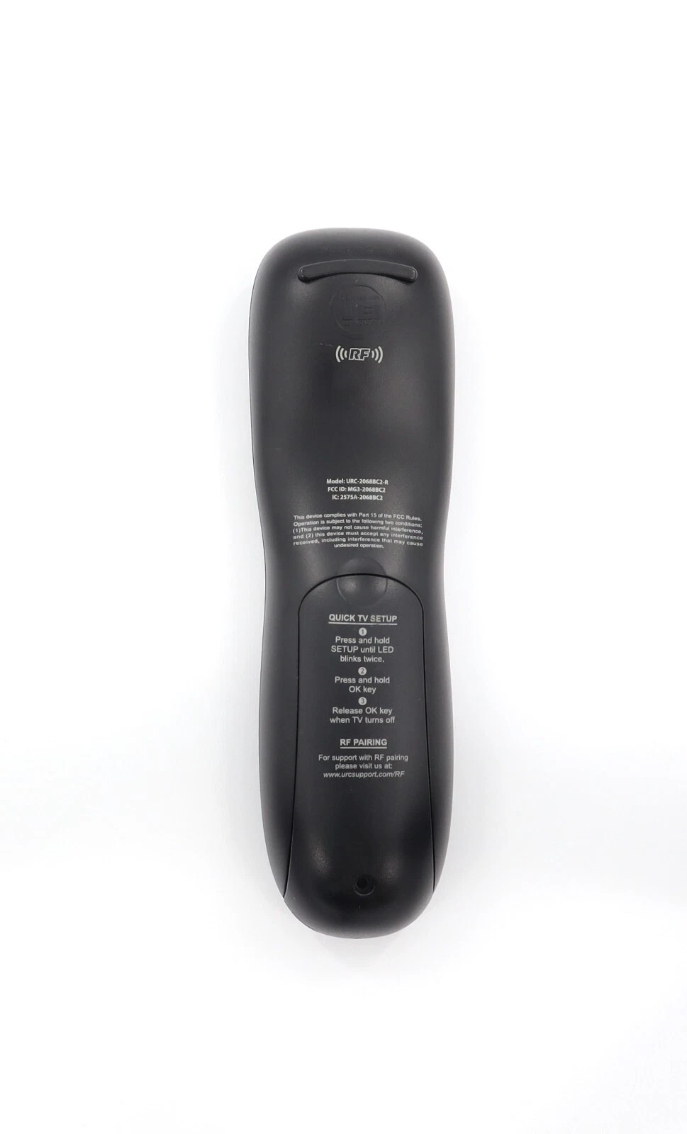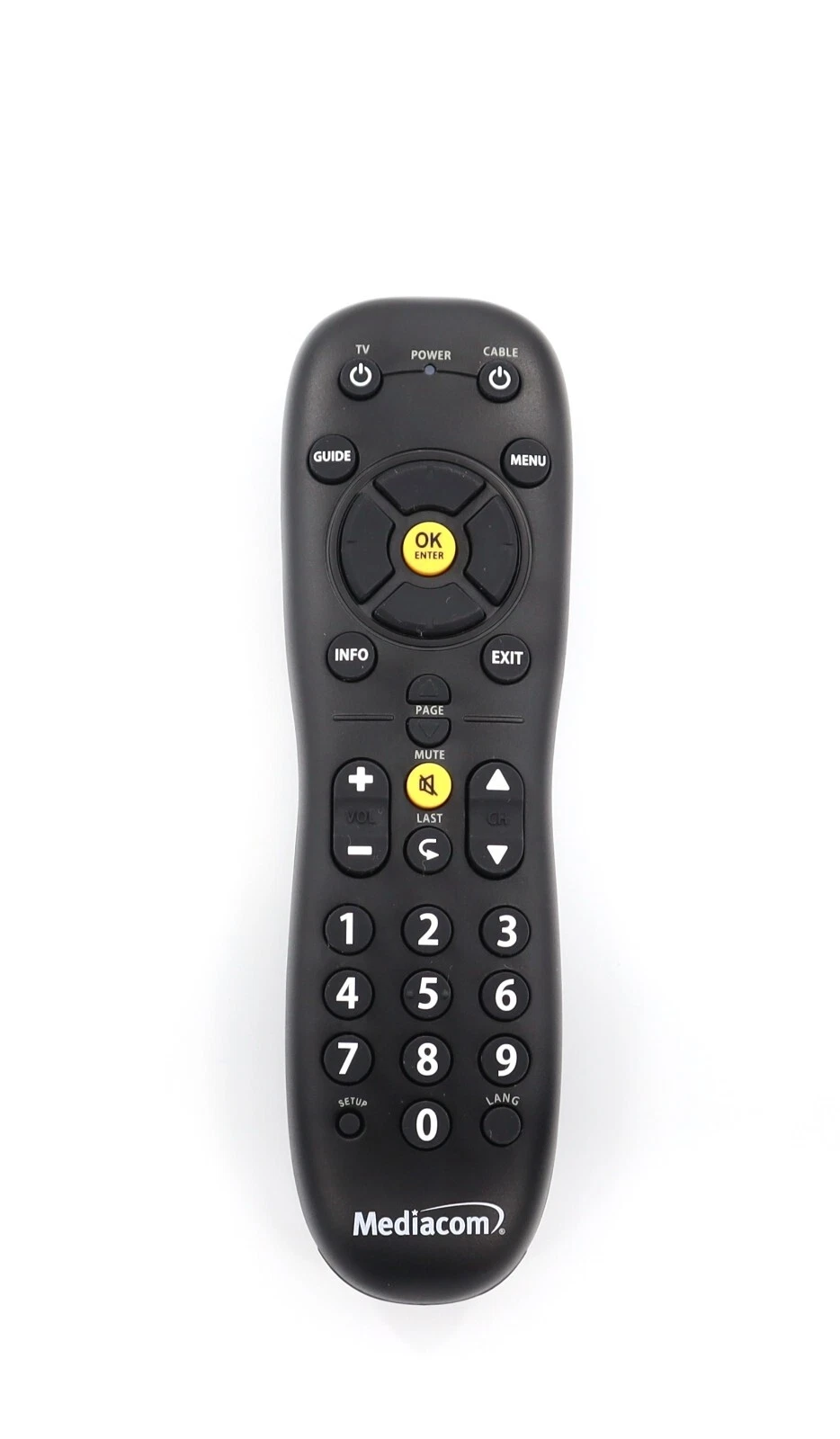 Mediacom remote control, model URC-2068BC2-R. Designed for use with Mediacom receivers and set-top boxes, this remote is ideal as a replacement or spare. Although it supports universal setup capabilities, some functions may not work with devices other than your receiver. Manual setup is required for TVs, DVD players, and other AV equipment. Please check receiver compatibility before purchase.
