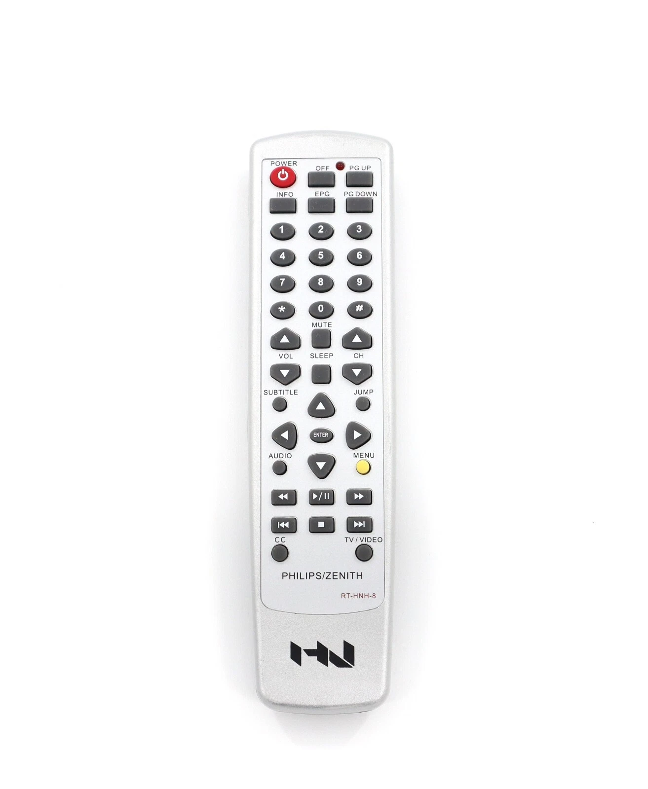 Remote control compatible with Philips and Zenith Electronics televisions, model RT-HNH-8. This is a replacement remote designed to operate supported Philips and Zenith TV models.