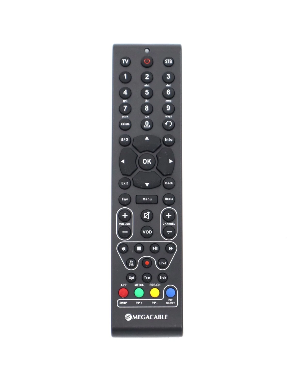 Cisco PDS Series Megacable remote control, compatible with PDS-3121 receivers. This remote provides reliable control for your cable or set-top box and is ideal as a replacement or spare remote for your home entertainment system.