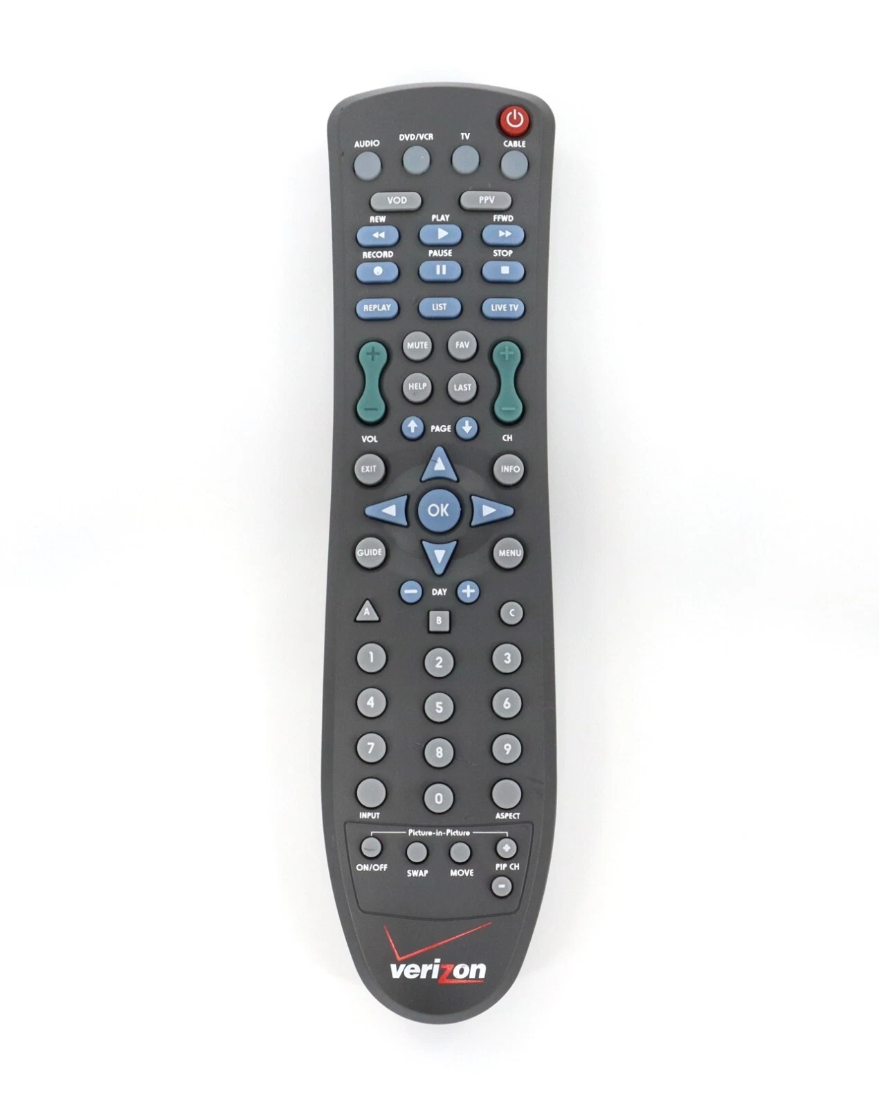 Verizon remote control for receivers and set-top boxes, model 1072BA1-J-C-D. This remote has universal setup capabilities; however, some functions may not work with devices other than your receiver. Please check receiver compatibility before purchasing and contact us if you need additional information. Manual setup is required to program the remote for use with TVs, DVD players, and other audio/video devices.