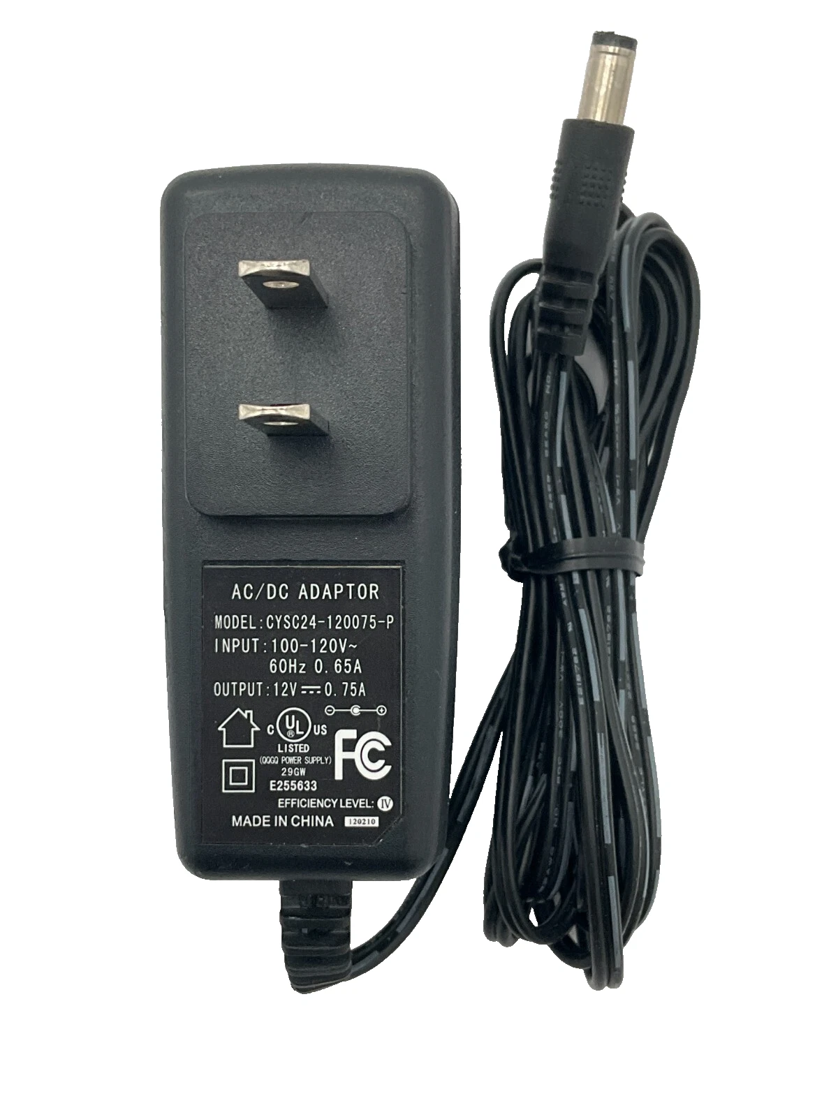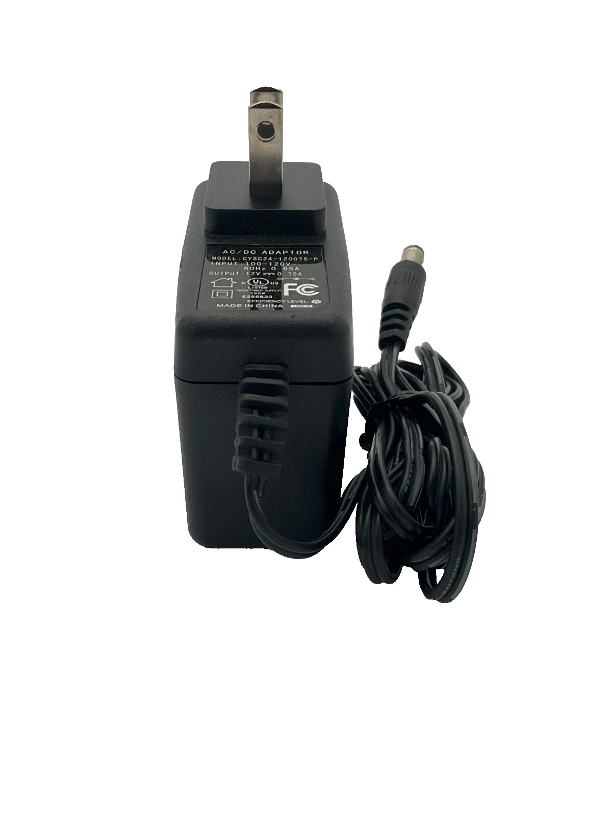 AC/DC Power Supply Adapter CYSC24-120075-P 100-120V 60HZ .65A 12V .75A