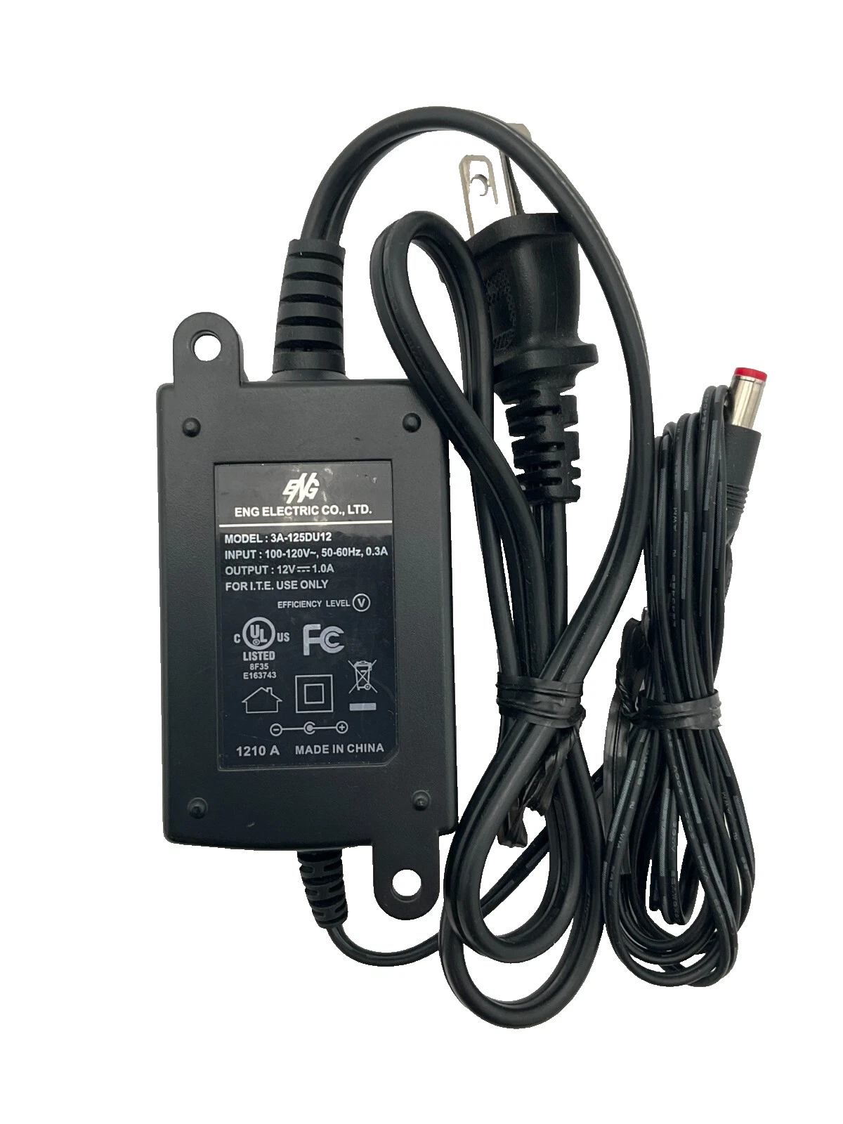 ENG Electric Co. power adapter, model 3A-125DU12. This adapter supports an input of 100-120V 0.3A 50/60Hz and provides a 12V 1A DC output, making it a suitable replacement power supply for compatible electronic devices. Please verify voltage, current, and connector compatibility before purchase.