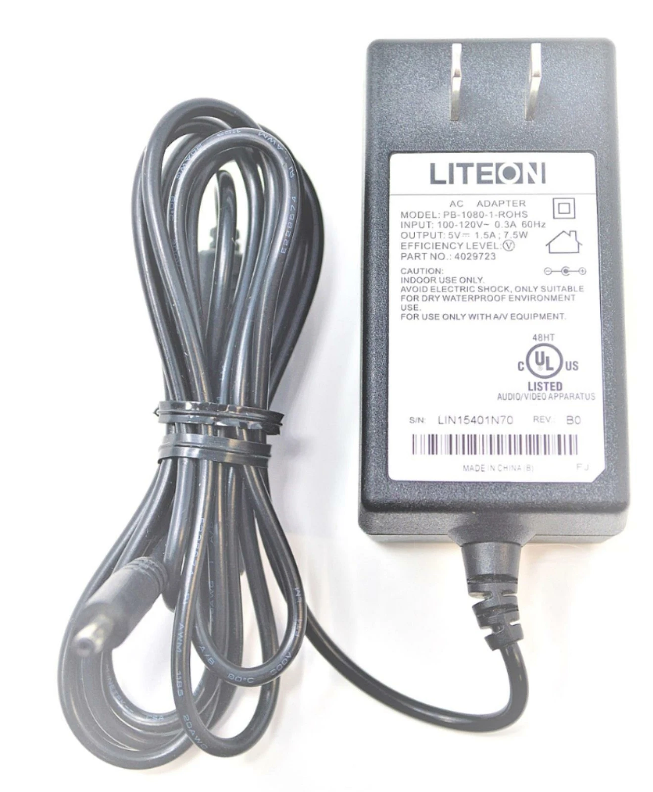 LiteOn Power Adapter PB-1080-1-ROHS 100-120V 60HZ .3A 5V 1.5A 7.5W