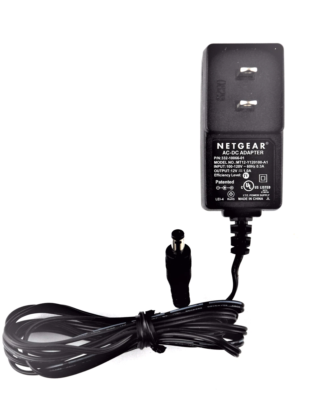 Netgear AC-DC power adapter, model MT12-Y120100-A1 (P/N: 332-10190-01). This adapter supports 100–120V 60Hz input and provides a 12V 1A DC output. Compatible with various modems, routers, and extenders. Please verify plug size, voltage, and current compatibility before purchase.