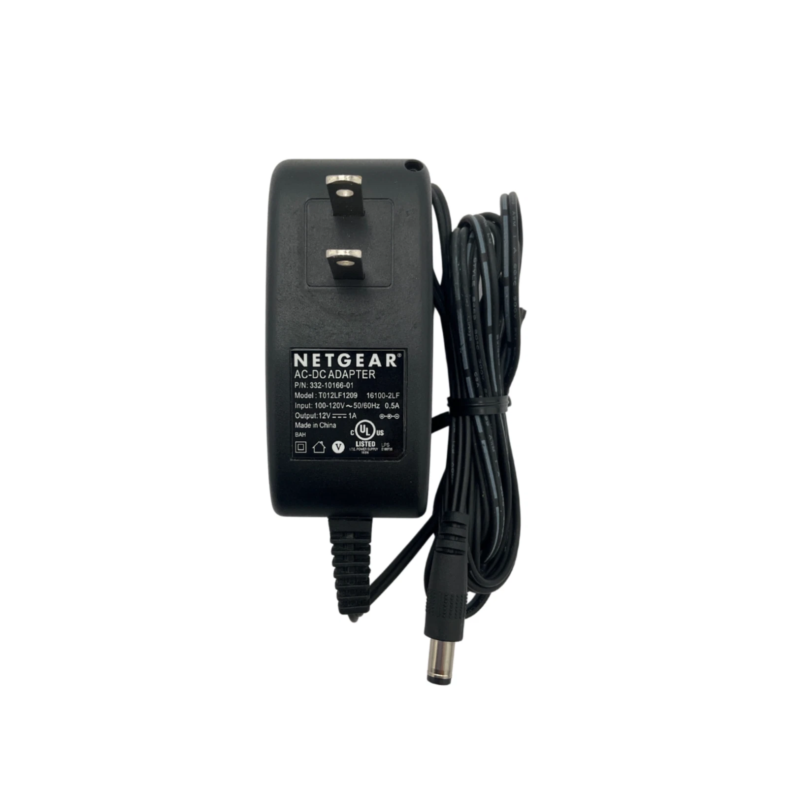 Netgear power adapter, model T012LF1209 (P/N: 332-10166-01). This adapter supports 100–120V 50/60Hz at 0.5A input and provides a 12V 1A DC output, making it a reliable replacement for compatible devices. Please verify voltage, current, and connector compatibility before purchase.