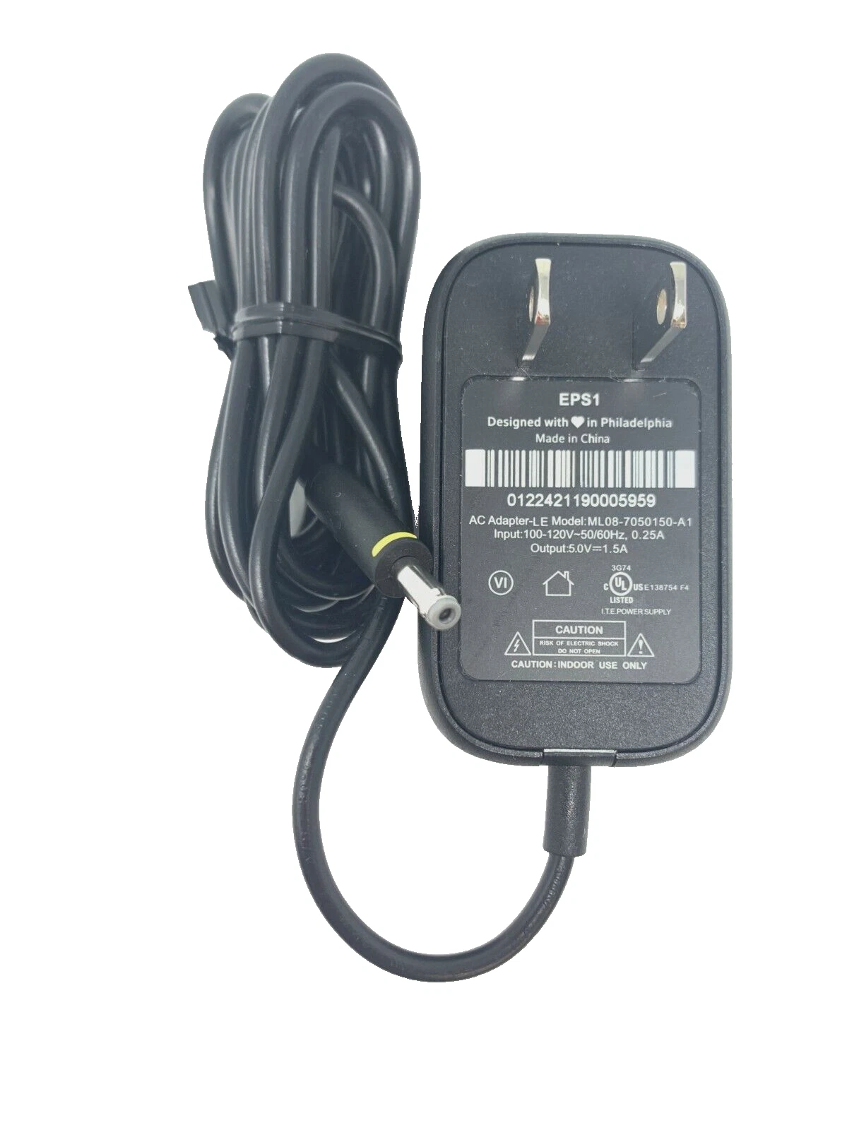 Replacement for Xfinity EPS-1 AC power adapter, model ML08-7050150-A1. This adapter supports 100–120V 50/60Hz at 0.25A input and provides a 5V 1.5A DC output, making it a reliable replacement for compatible devices. Please verify voltage, current, and connector compatibility before purchase.